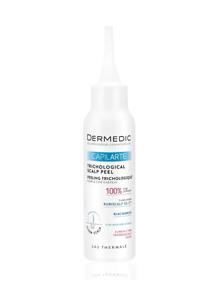 Capilarte ist ein trichologisches Kopfhautpeeling für alle Hauttypen, auch für problematische und überempfindliche Haut. Die innovative dermatologische Peelingformel wurde von Trichologen entwickelt und klinisch auf Wirksamkeit und Sicherheit getestet. Ihre Wirkung basiert auf der synergistischen Zusammensetzung von fünf Säuren, darunter Glykol- und Salicylsäure – Puriscalp GS-5™. Diese sorgt für eine gründliche Reinigung der Kopfhaut von abgestorbenen Hautzellen, Talg und Umweltschadstoffen und öffnet die Haarfollikel für eine bessere Aufnahme der Wirkstoffe.