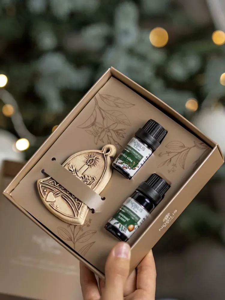 Das Mini-Geschenkset für Fans der Aromatherapie bringt eine warme Winteratmosphäre, Harmonie und positive Stimmung in Ihr Zuhause. Die Kombination aus ätherischen Ölen von Zimt und Orange ist ideal für die Winterzeit und kann beliebig miteinander kombiniert werden. Je nach Stimmung können Sie die würzigen Noten, die saftigen Zitrusfrüchte oder die ausgewogene Mischung genießen. Auf die mitgelieferte Keramikplatte aufgetragen, verströmen sie angenehme natürliche Düfte, reinigen gleichzeitig die Luft, fördern die Verdauung und sorgen für angenehme Wärme an kalten Tagen.