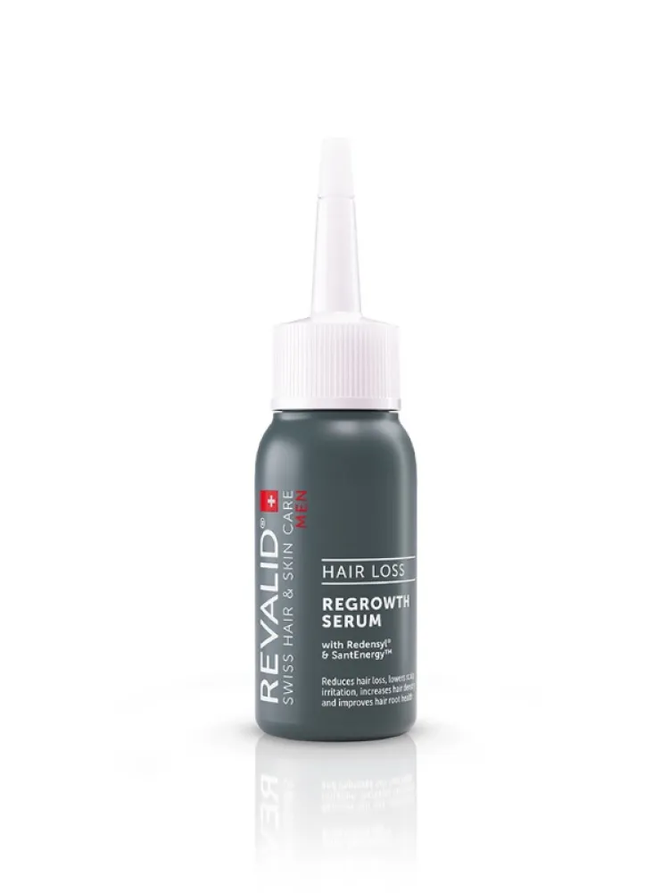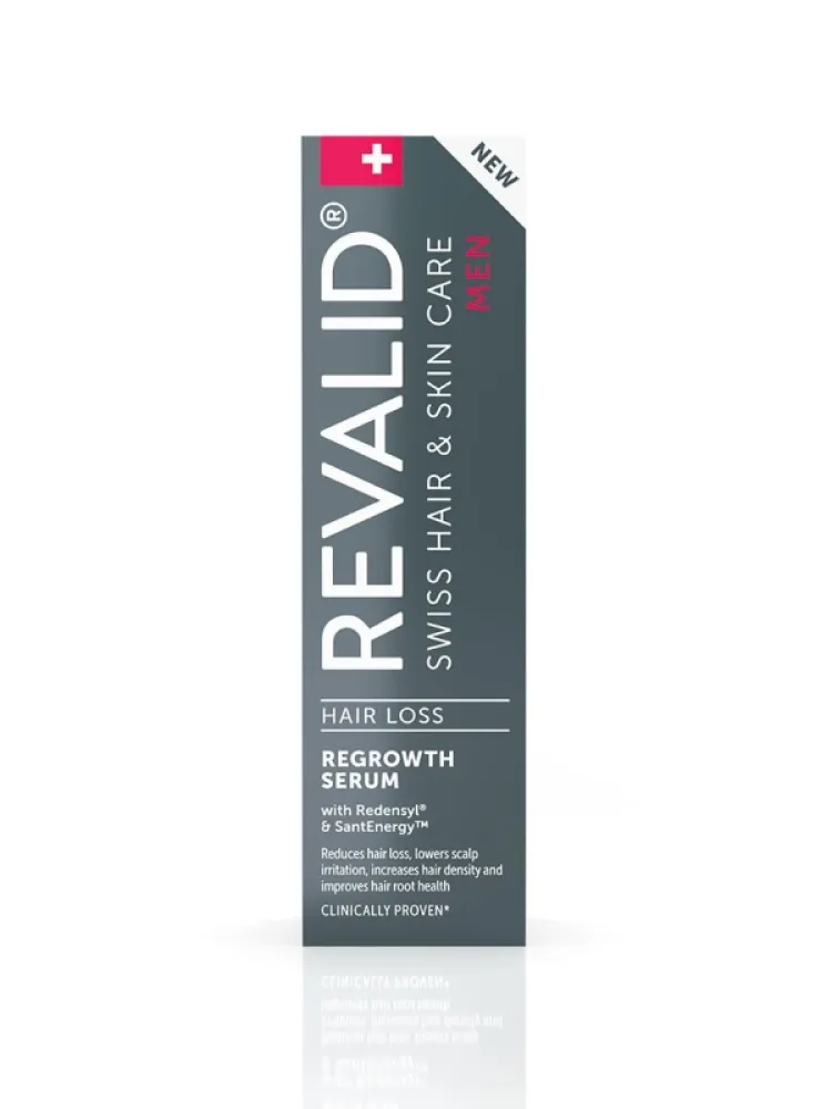 Produktinformationen zu Revalid Regrowth Serum gegen Haarausfall bei Männern.