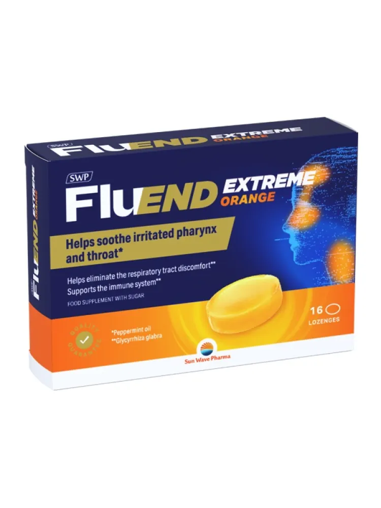 SWP Fluend Extreme Orange Lutschtabletten mit erfrischendem Orangengeschmack lindern Hals- und Rachenreizungen schnell und effektiv.